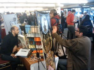 Our panel was hella fun, or so everyone but one half of Secret Acres thought. Now, we were meant to discuss “the ever changing world of producing and publishing indy comics.” Other than needing to needle Blaise about his trophy thing and the comments thereupon, we decided to walk the talk of the talker to which Journalista Dirk linked. We figured if that Jeff Jarvis guy can talk about learner directed education, we could make it happen (Could you, Jeff Jarvis, you pompous bastard lecturer?). So we started with questions, rather than ended with them. It turns out that Jeff Jarvis was right; learners know what they want to know. We won’t get into the nitty gritty, but we will say this: Secret Acres’ stationery is real pretty; Theo Ellsworth lived in a cave; print and digital are not mutually exclusive (unless we’re talking about newspapers and periodicals); Minty is back in action post PS Comics – and, for all the talk, Secret Acres got Blaise to admit that the format of his future work will be a book. Now that’s mad real, as they say in France.
